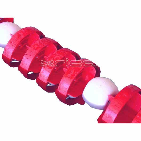 Corchera efecto antiolas con flotadores helicoides de polipropileno (10,5 cm de diámetro) y boyas tipo donut de polipropileno soplado (6,5 cm de diámetro) y de varios colores, Cuerda de poliéster de 8 mm,
