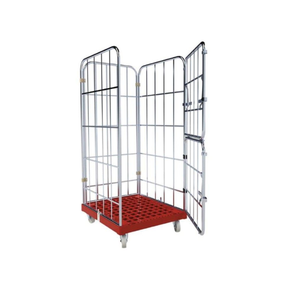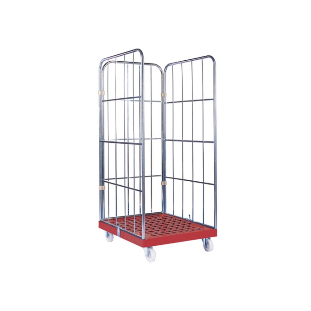 Carro de transporte de acero, tipo Roll Container con base sólida de plástico HDPE, sistema de almacenaje con diversos acabados.