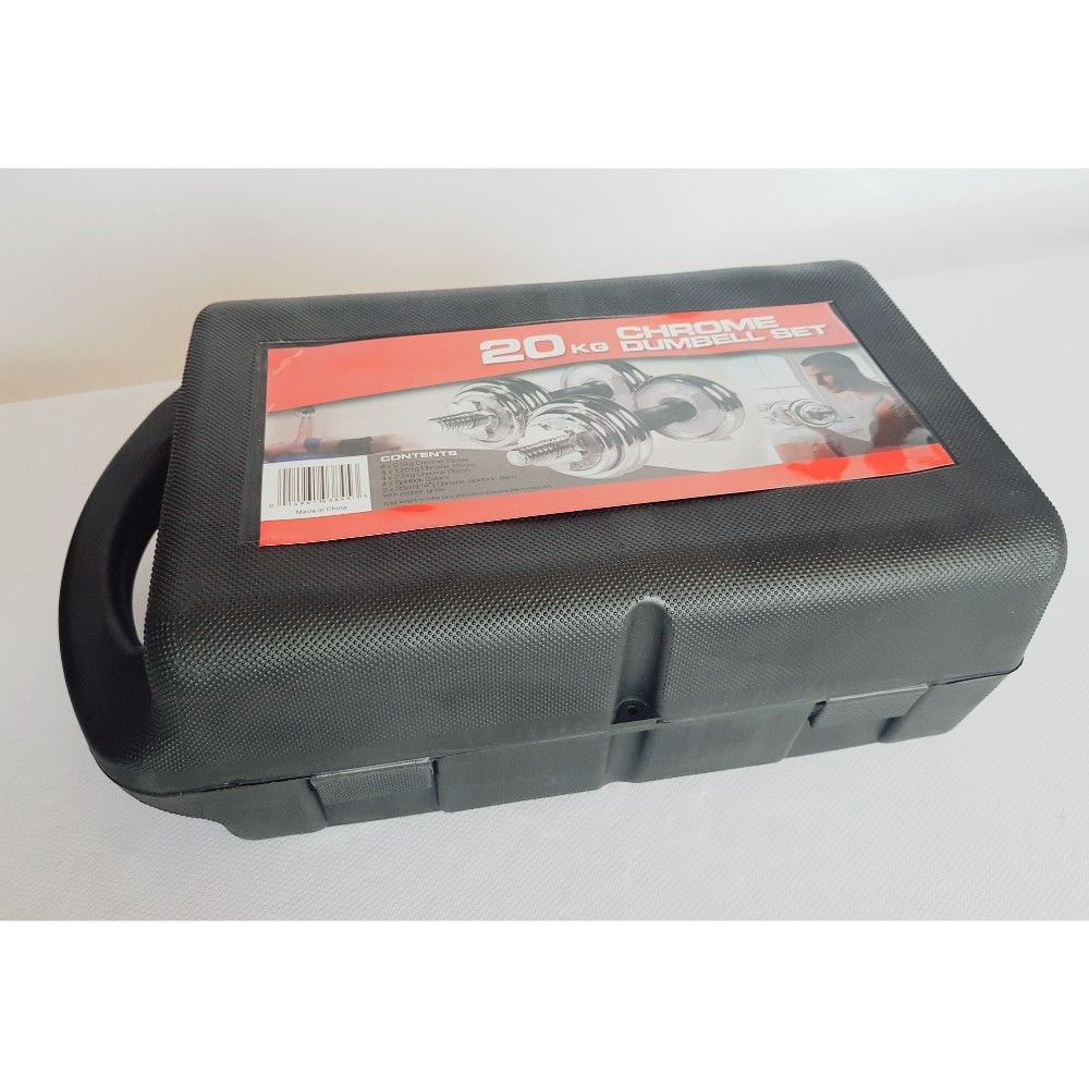 Set de Mancuernas de Acero Cromado con maletin de almacenaje y transporte total: 20 Kg./ Peso real útil: 18 kg..